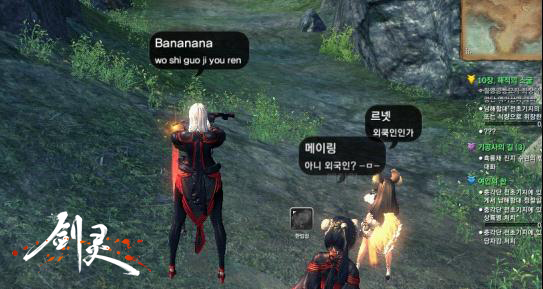 在练级的路上遇到了两个韩国玩家(目测是MM)在聊天,虽然看不懂在说什么,但是感觉很厉害的样子,于是就华丽地用拼音和他们打招呼,相信他们一定被我的友好感动到了!