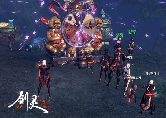 终于干掉了第一个野外BOSS千魂老妖,手快有手慢无,MC以迅雷不急掩耳之势摸到了尸体,咦,装备呢,怎么只有几个代币,这是什么东西。。。原来在附近有一个摇奖机,部分BOSS将不再掉落装备而是代币,每个代币可以获得一次摇奖机会,奖品从肉包到时装甚至是整套八卦牌不等(当然,和所有摇奖机一样,肉包的那个格子肯定是最大的。。。)。摇奖的人好多啊,让MC感动的是大家都井然有序地在排队,剑灵玩家的素质还是很高的哦~