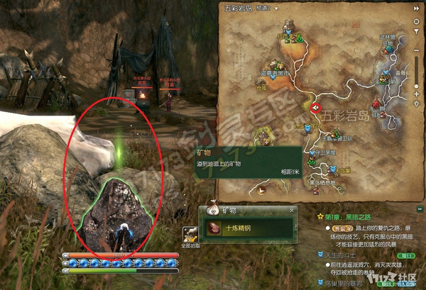 在王霸军警卫队的北部,三岔路口一块绝壁的下方,具体位置查看下图。