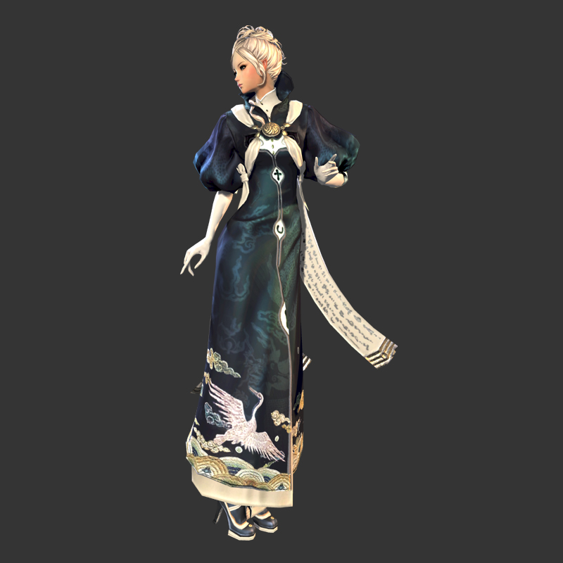 "天命衣"的设计相当棒,裙摆的"白鹤"成为整套衣服的点睛之笔,而其实这套衣服最早并不是现在的"白鹤"图案。早在2009年剑灵Gstar的宣传视频里。这套衣服就已经出现过,当时的图案可就没现在好看了。