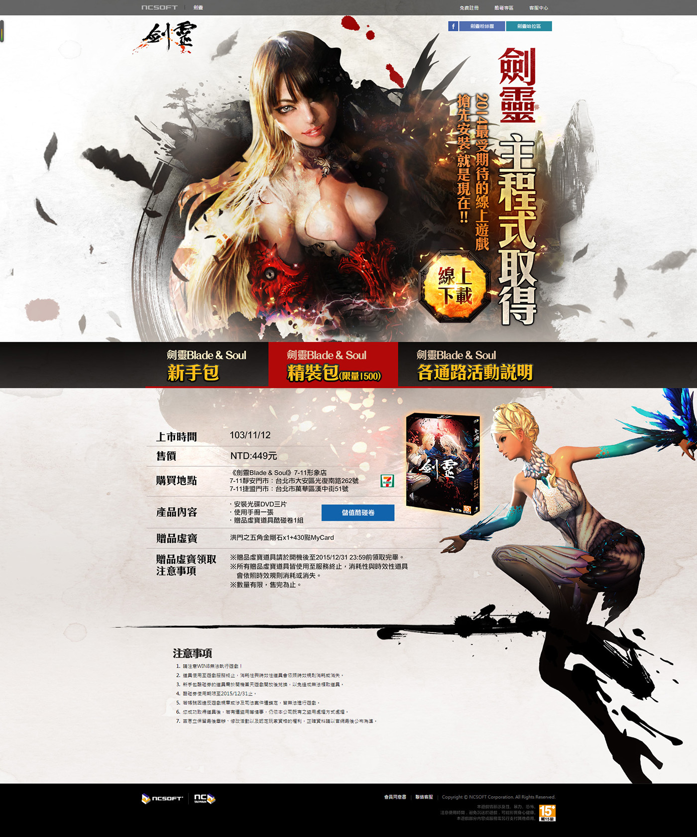 NCsoft 旗下3DMMORPG 《剑灵 Blade & Soul》,结合知名韩国画师金亨泰的具有特殊风格人物与场景设定,展现出令人著迷的人物故事,玩家将会随著事件自然而然探索游戏中的故事。