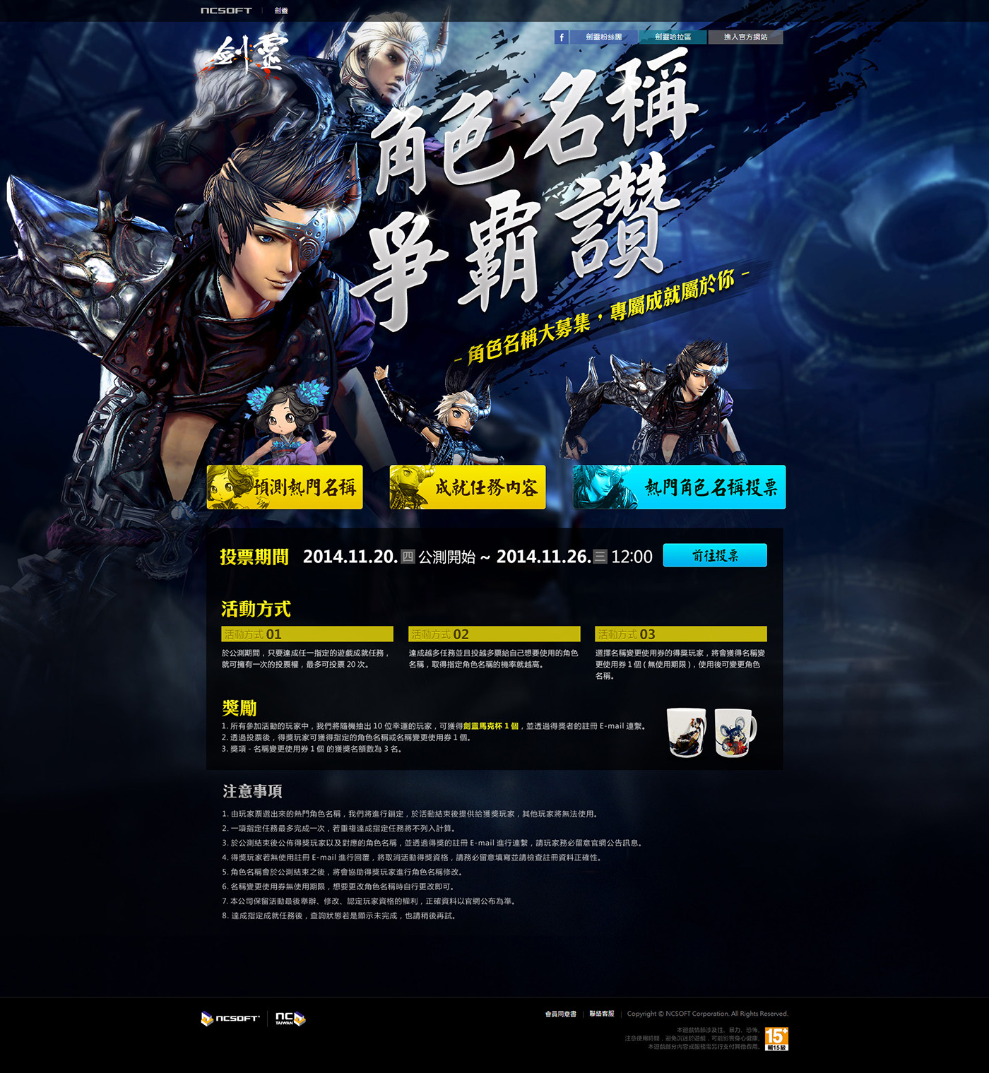 随着台服的正式运营,意味着NCsoft在完成海外亚洲地区的进程,接下来就是欧美地区(EU/NA)了,之前也有消息欧美地区将会在2015年展开测试,欧美玩家终于不用忍受语言不通和恼人的延迟来国服和台服体验了。(虽然他们在国服公测的时候就已经做了英化补丁)