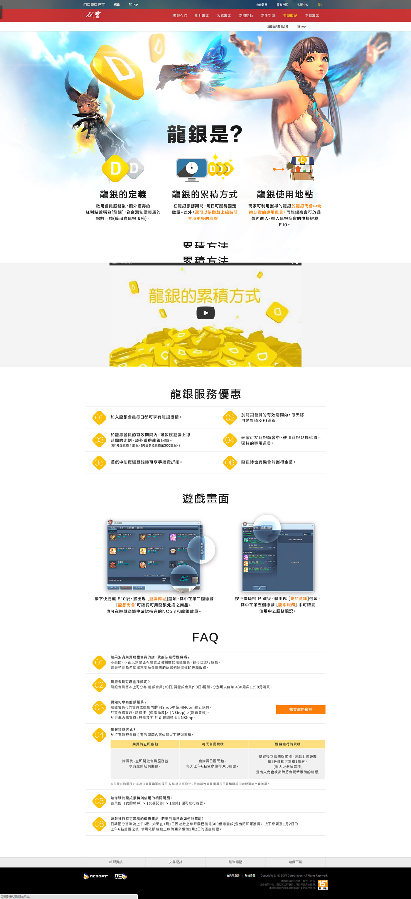 台服的运营方式和国服有点类似,但又有区别。台服是以"龙银服务"作为营收的切入点。首先台服没有成长失败概率,时装也都是永久的,即使不购买龙银服务也能够畅玩游戏,商城的商品可以使用C点数购买。(比例大概为1RMB=6C,根据不同点卡网站会上下浮动)其次龙银服务就类似国服的会员增值服务,个别的服务可以单独分类购买,购买龙银服务之后会获得龙银点,即D点数,类似国服的绑定点券。