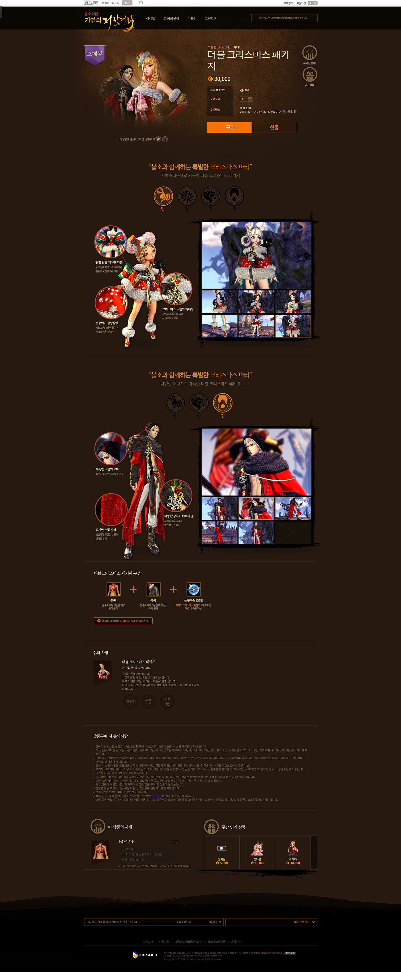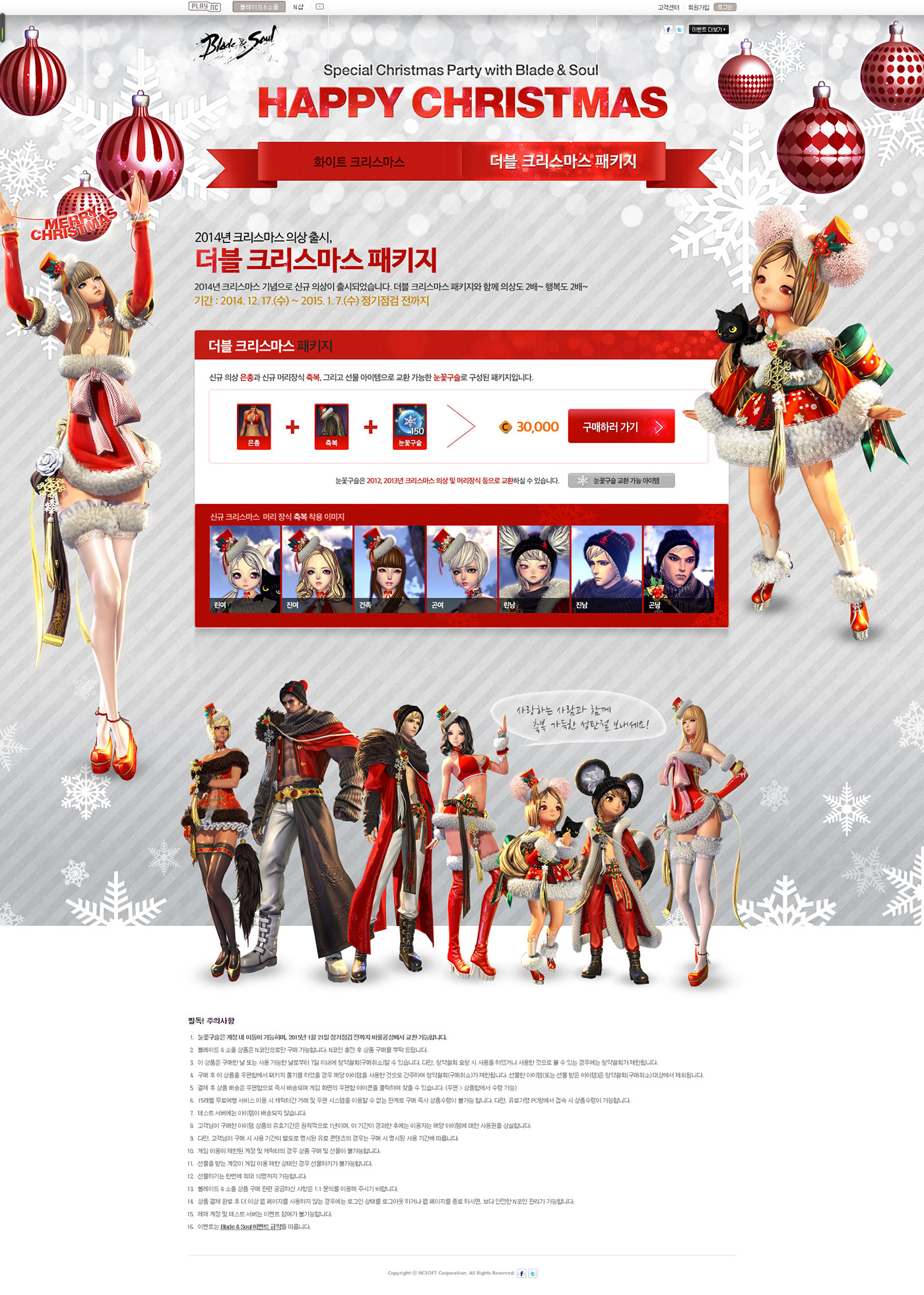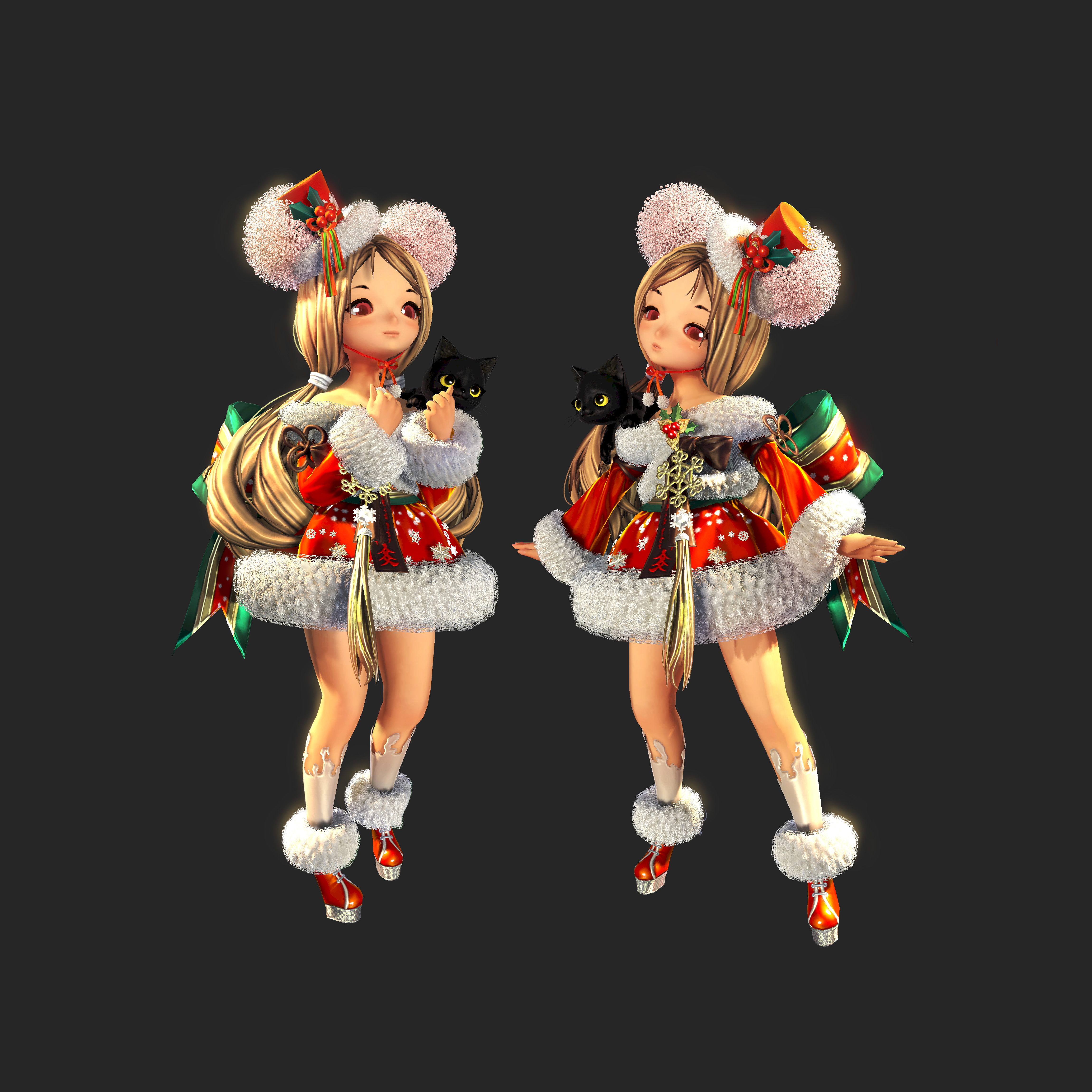 韩服的旧版圣诞服通过活动获得,2014新版直接在商城购买
